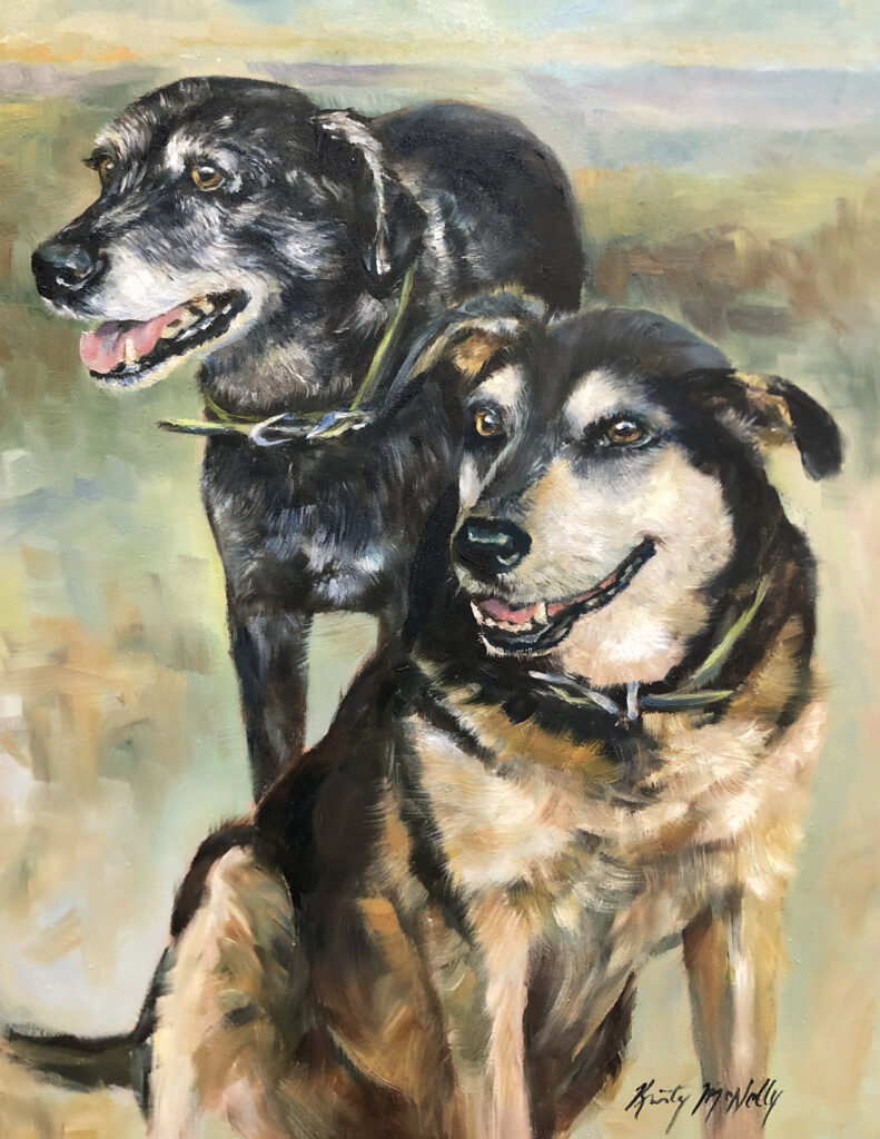 A memorial portrait of two wonderful farm dogs.